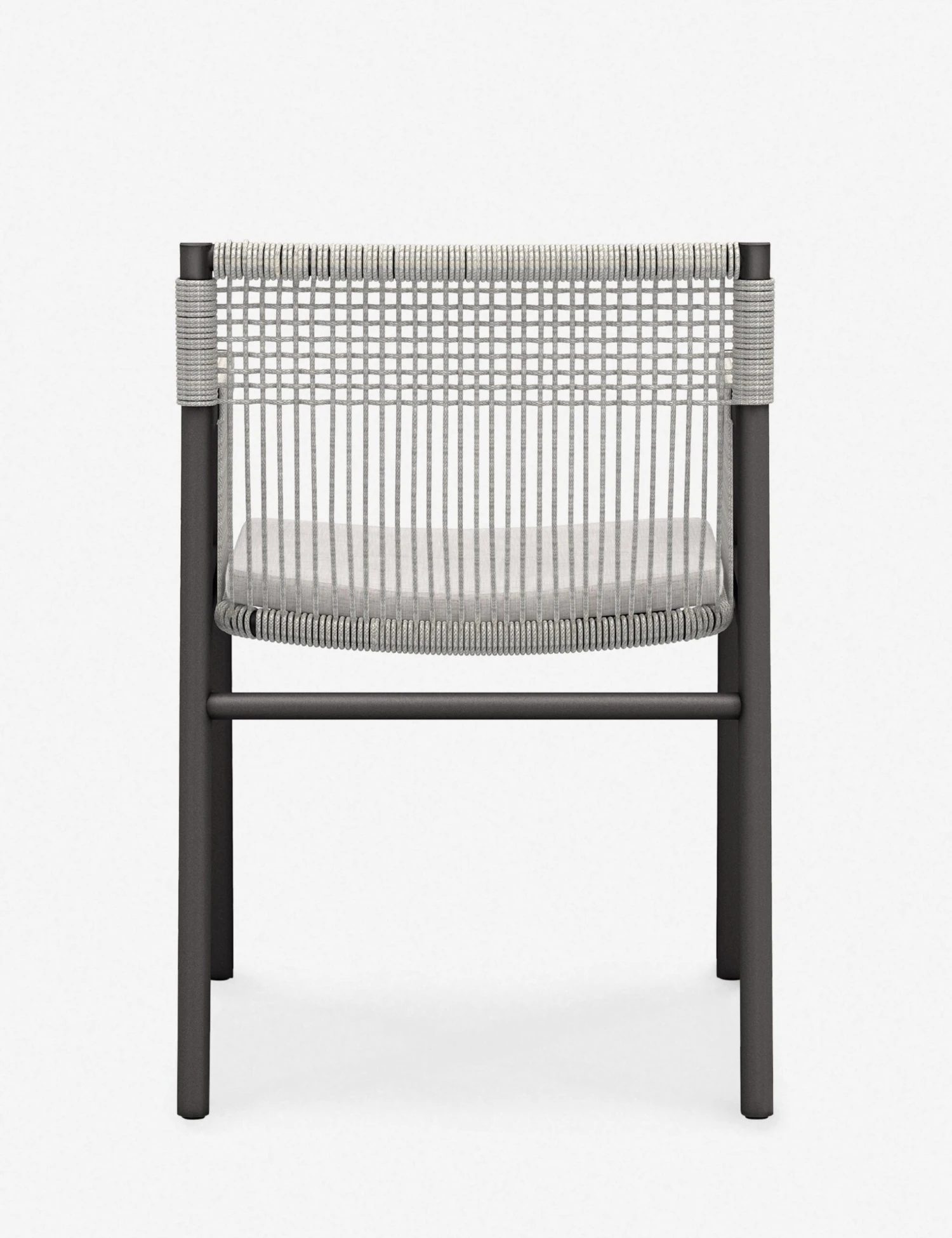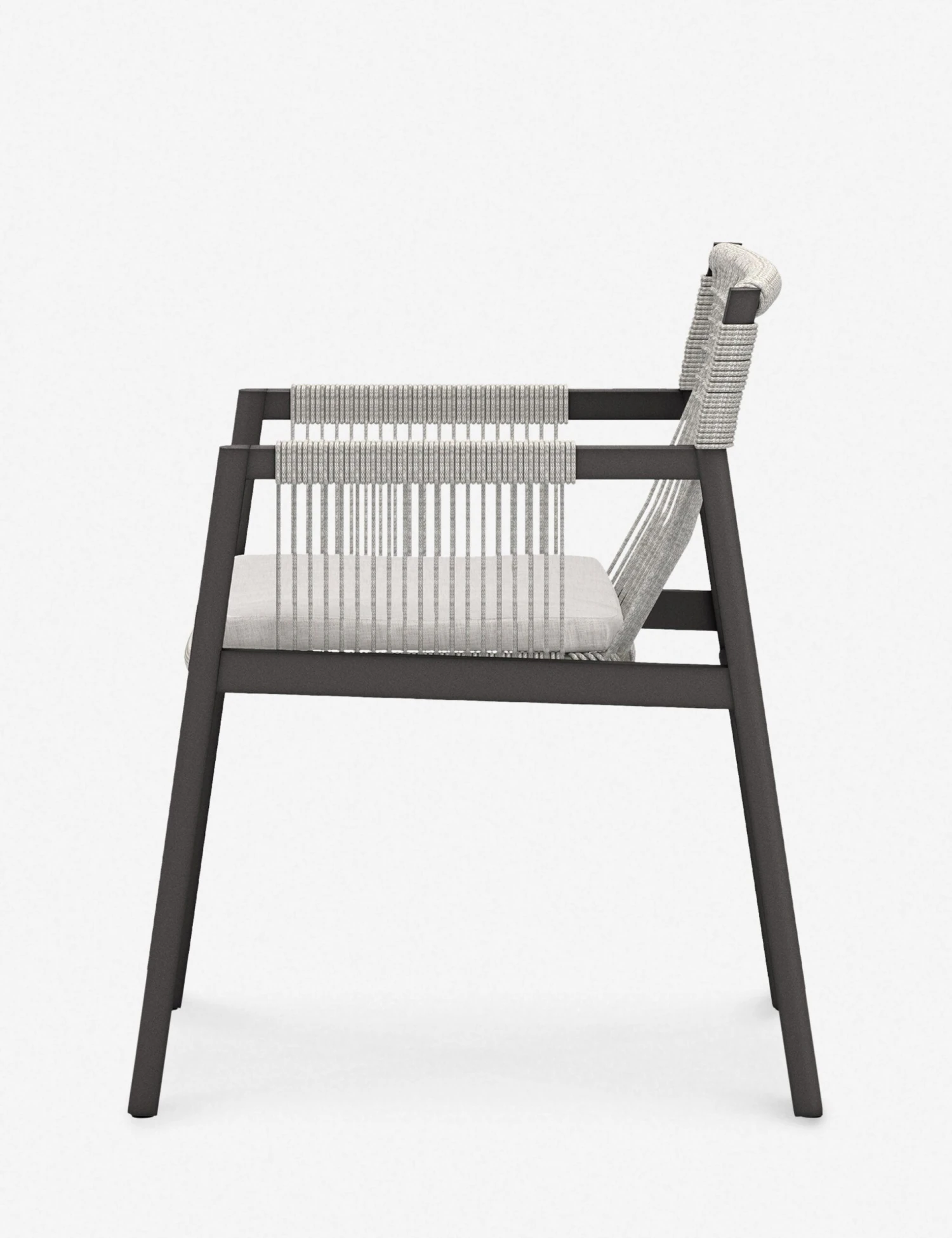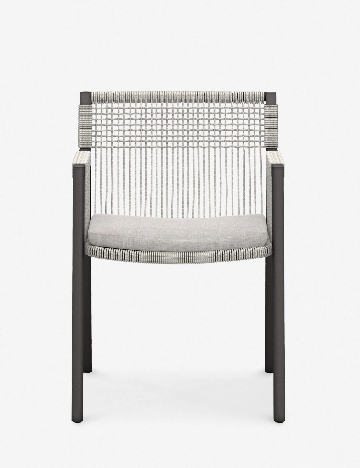 Strike a modern edge with this lightweight accent chair. A woven rope seat creates dramatic lines in its eye-catching profile. With its outdoor-friendly frame and performance upholstered cushion, this occasional chair can offer an elevated tone anywhere from a detached studio to a garden terrace.