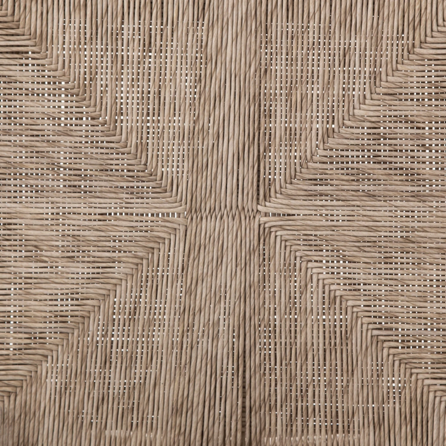 A trendy take on a mid-century favorite, this teak dining chair features a woven seat and a cutout back design.