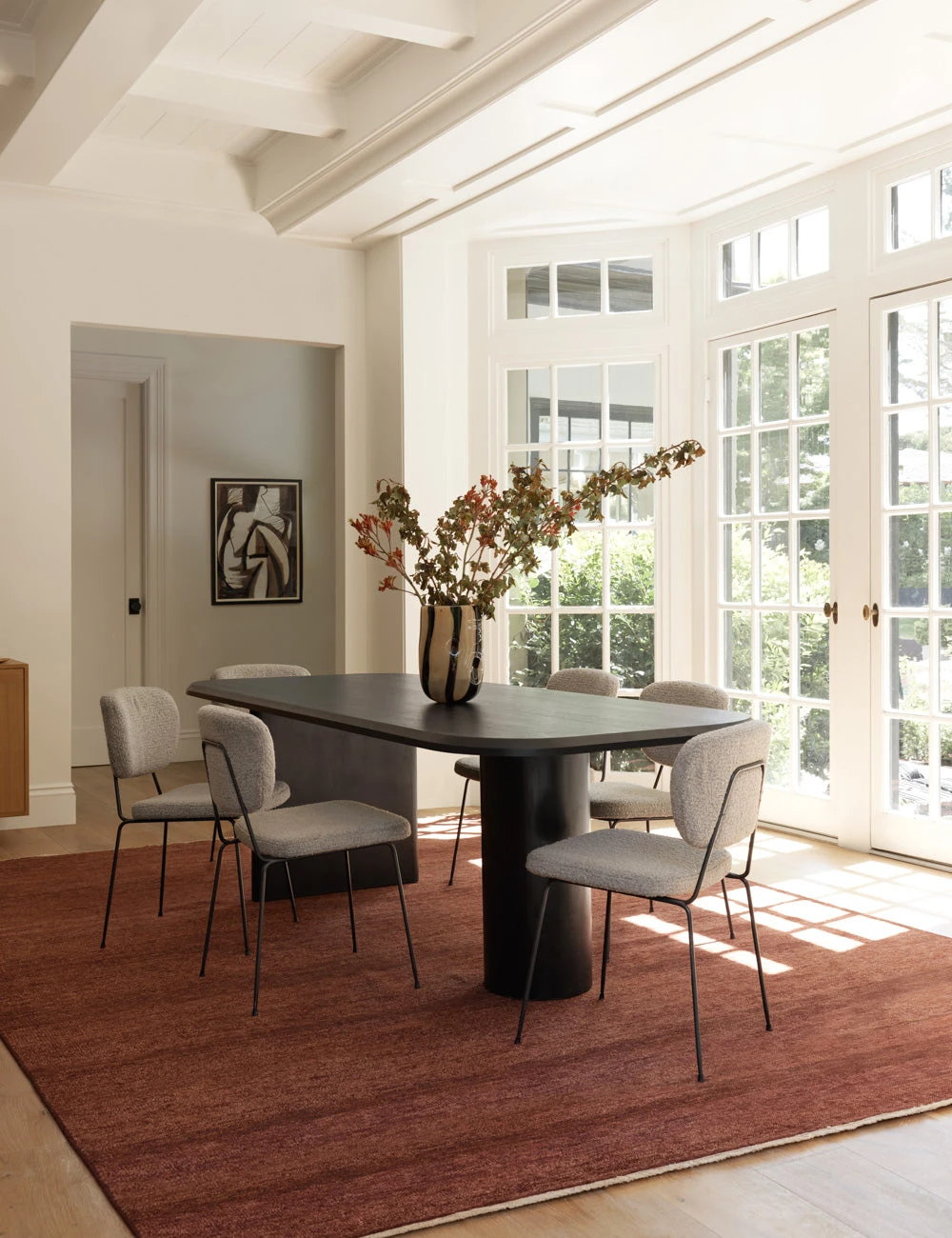 Our Hayes dining chair pairs a slender steel frame with plush upholstery to offer an airy silhouette made for sitting in comfort for hours. The plush but light design makes a great kitchen chair—try styling this pair with a round dining table for a chic yet cozy breakfast nook feel.