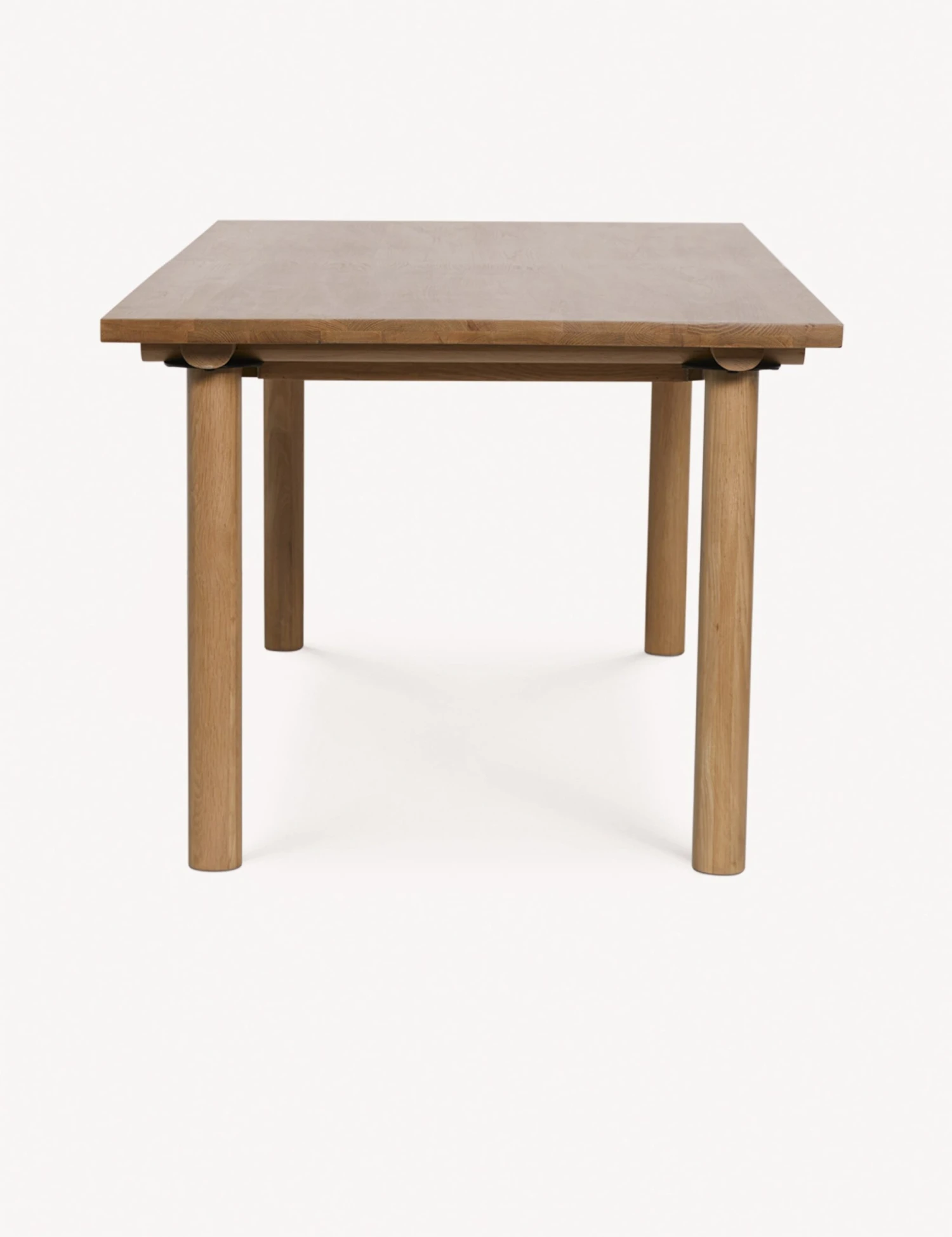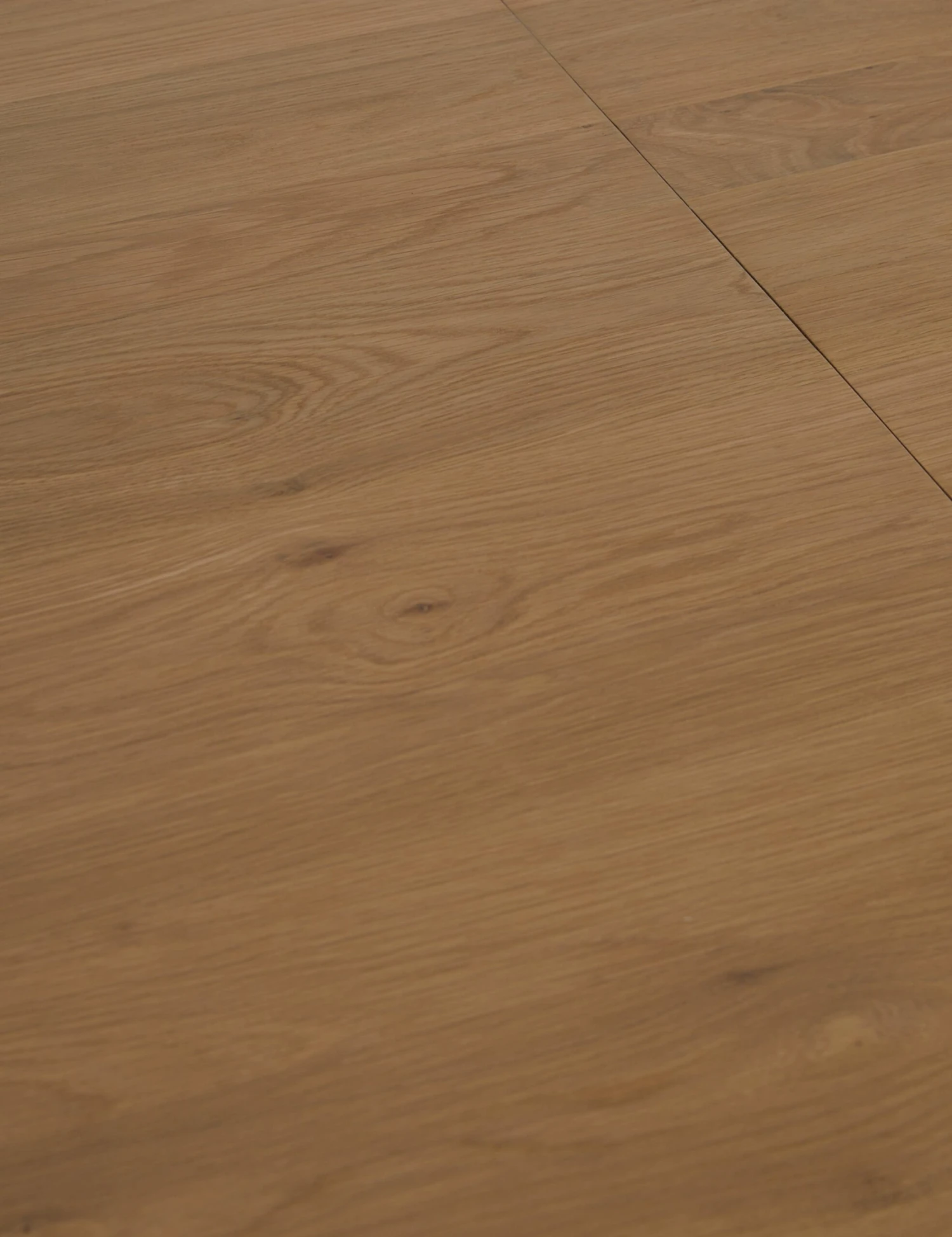 Make space to gather with the Hewitt extendable dining table. This oak table offers a rustic elegance with a grounded design that extends to grander proportions, offering the same warmth and charm with seating for up to eight people.