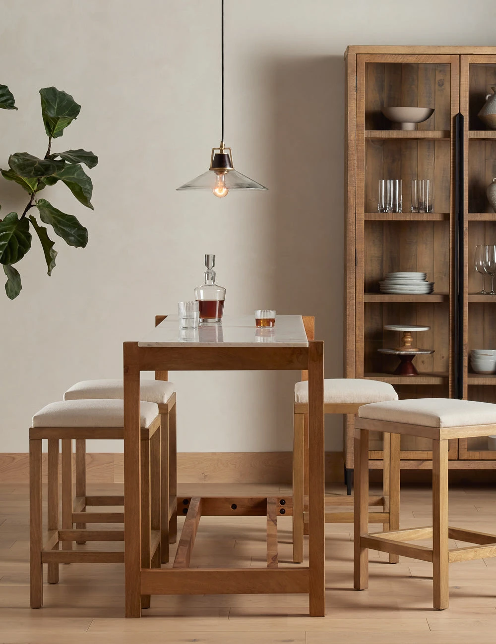 A clean, timeless design offers a dynamic stool for your kitchen or dining space. The burnished wood frame grounds this stool with rustic notes, while performance upholstery adds a soft, elevating touch for transitional appeal.