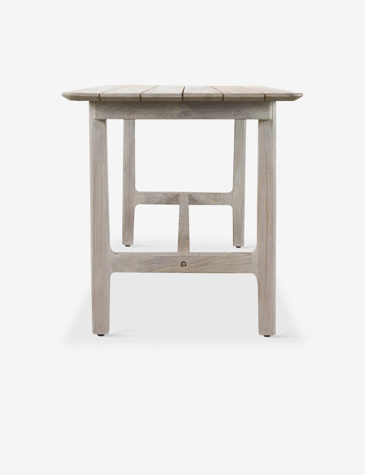 This counter-height dining table offers a rustic style set for modern design. Its plank top and sculpted cross base cut a balanced silhouette finished for impact with a solid teak construction made for lasting quality. We love this tall table for a sunroom breakfast nook or casual al fresco setting.